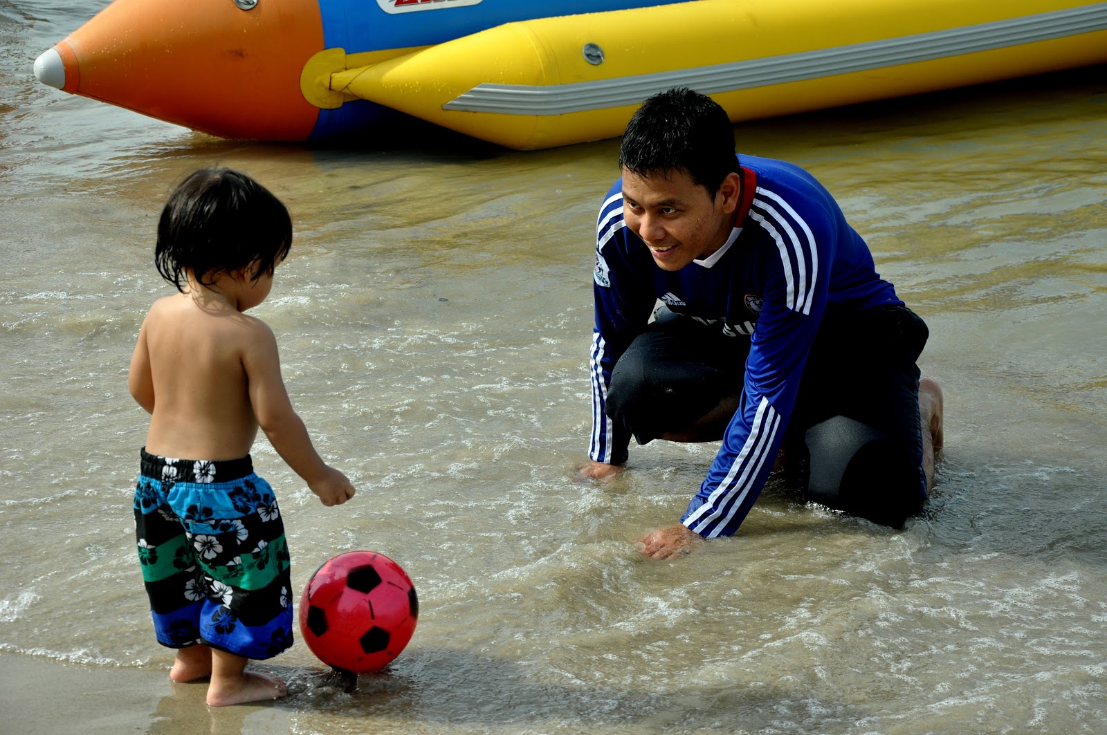 hahaha..iman pada mulanya takut dengan air laut..tapi sekarang dah suka main ombak..